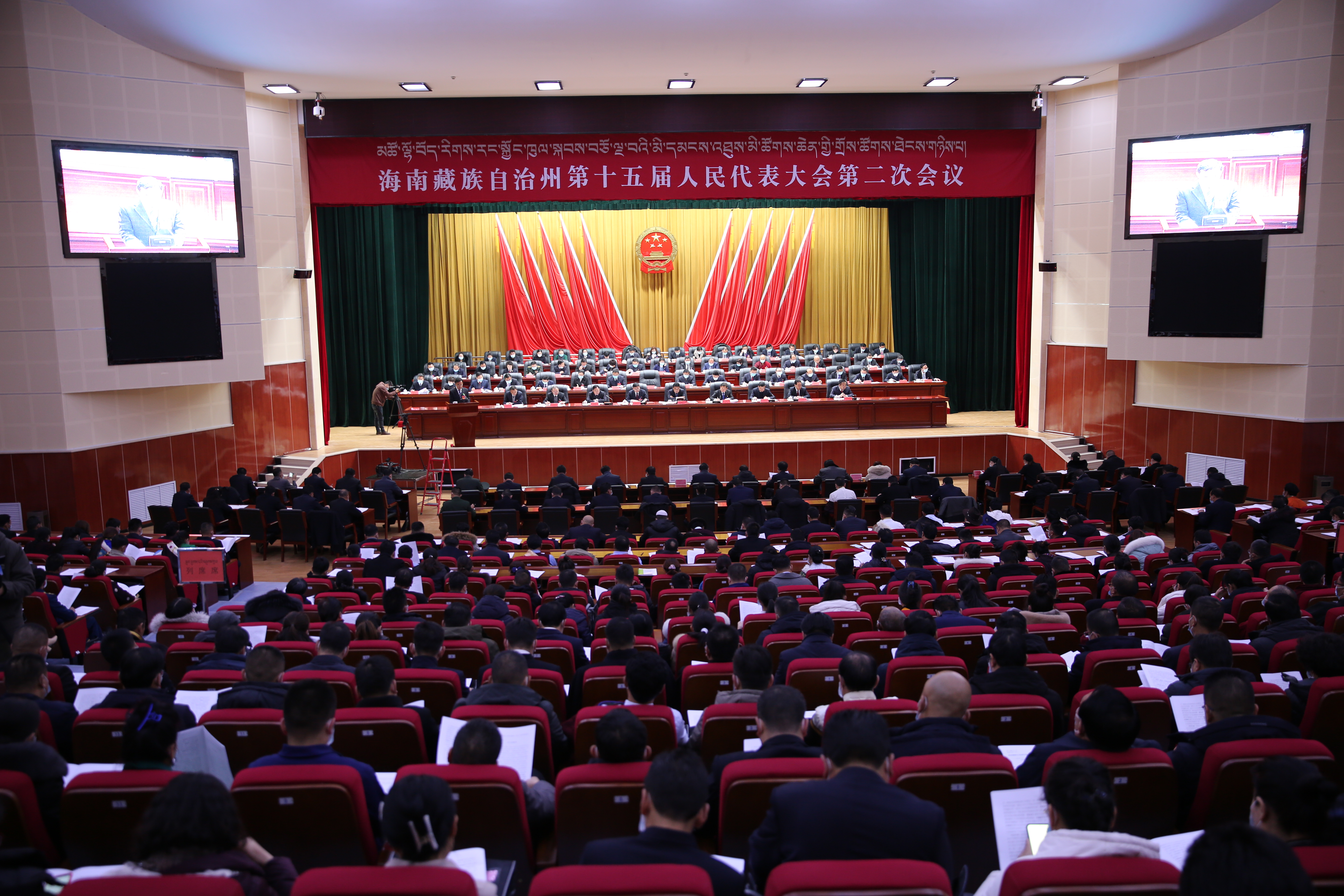 1月13日上午,海南藏族自治州第十五届人民代表大会第二次会议举行第二次全体会议。会议应到代表253人,实到231人,符合法定人数。