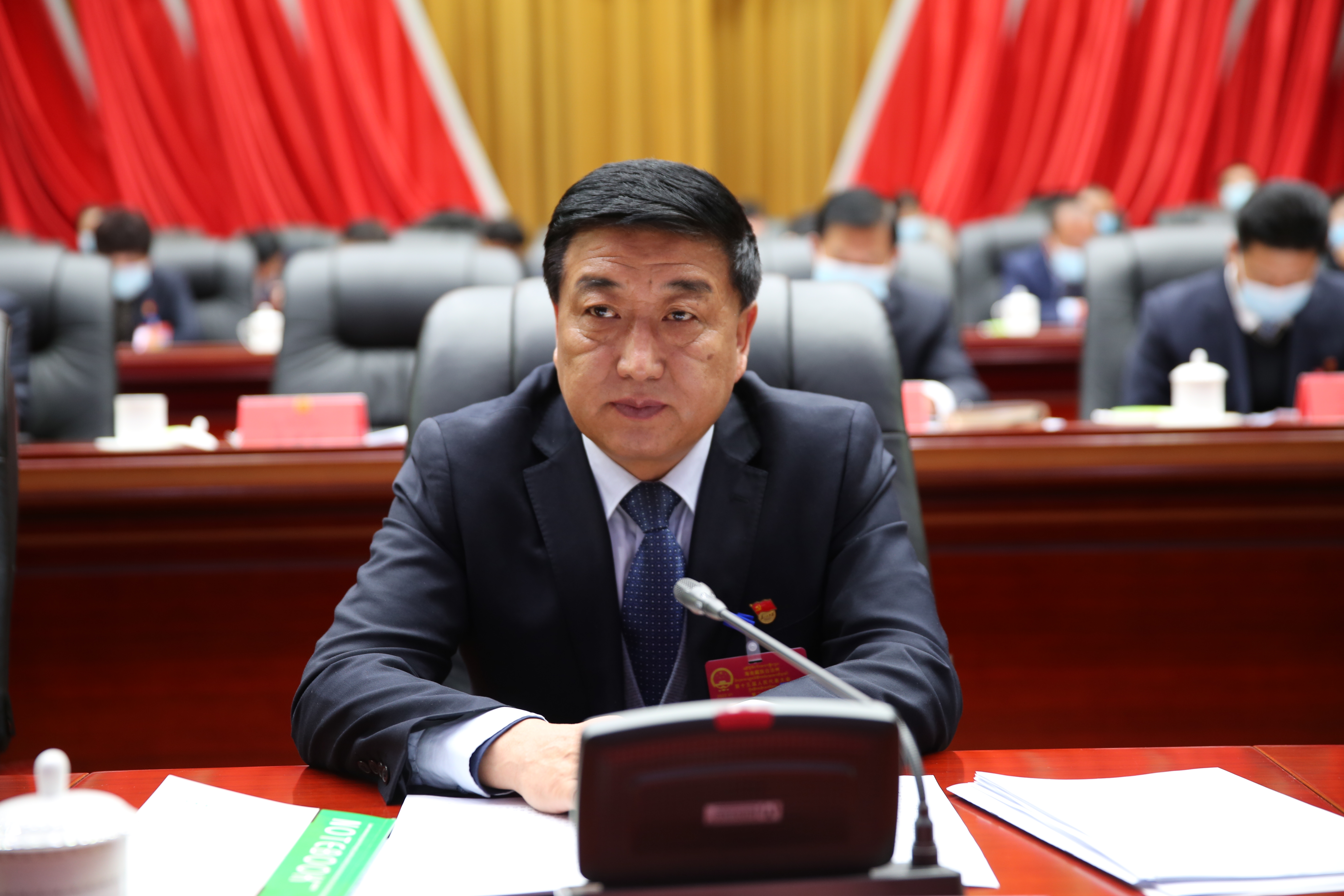 会议由主席团常务主席、第二次全体会议执行主席张生彪主持。大会执行主席张峰、白永栋、宁发贵、张德显、力格加、李锦亭、苑丹坚措、马永燚在主席台前排就座。