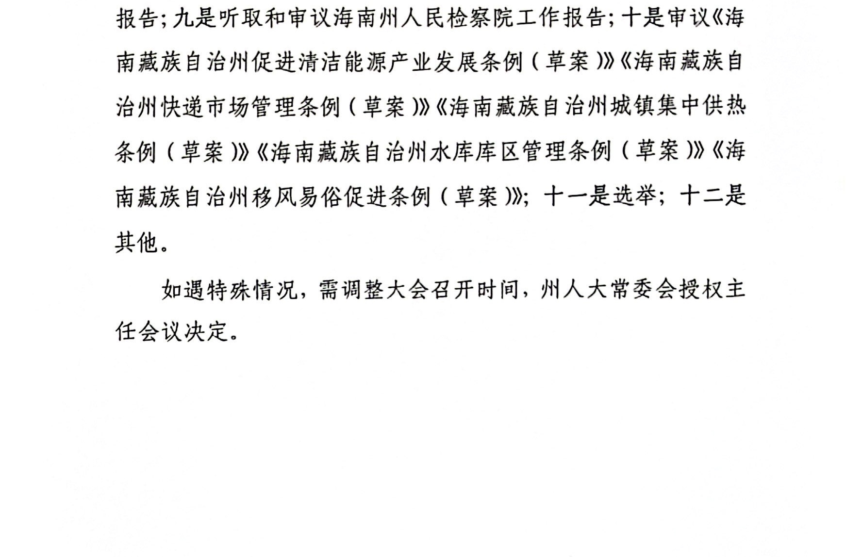 关于召开海南州第十五届人民代表大会第七次会议的决定