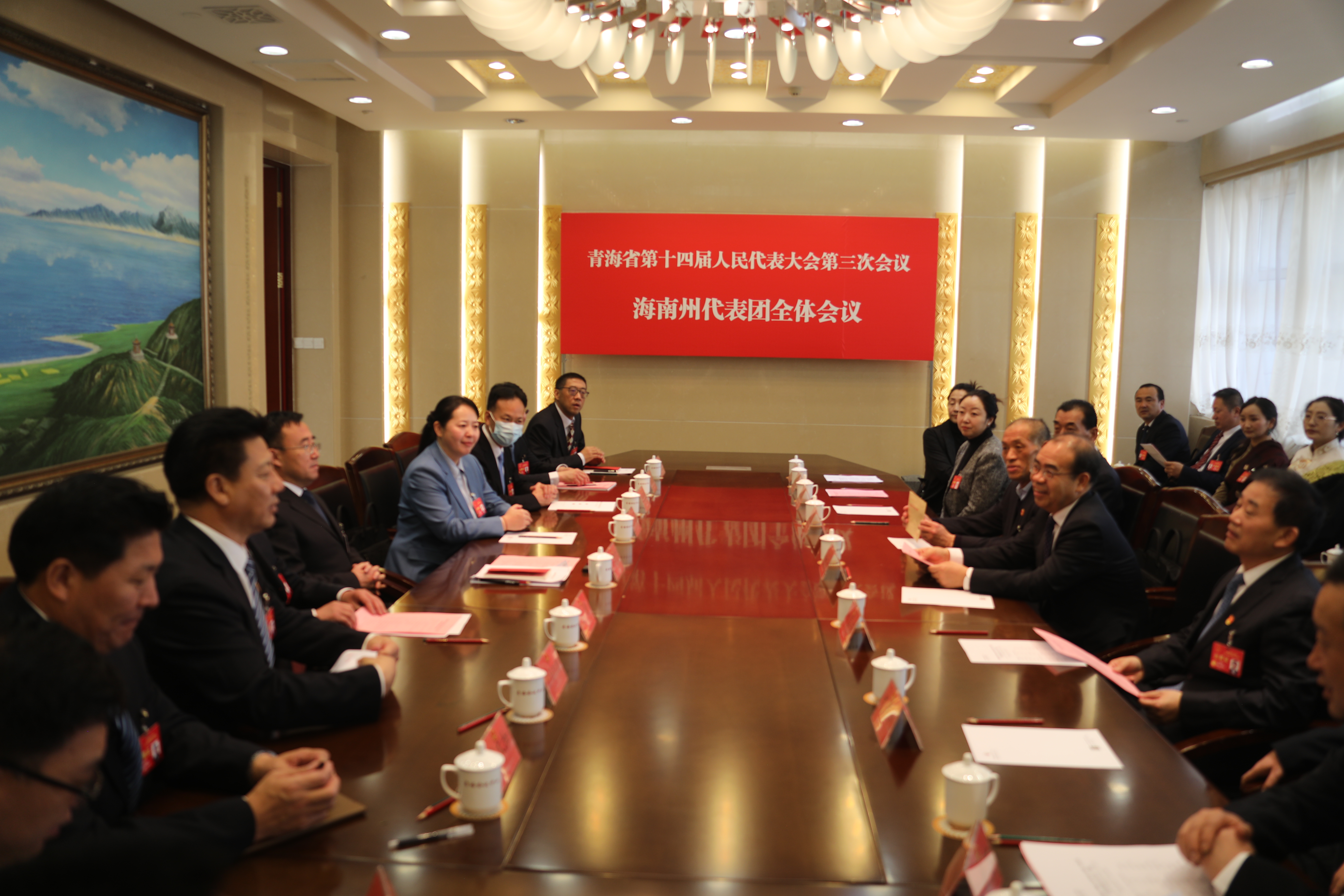 1月18日上午,出席省十四届人大三次会议的海南代表团全体代表在省会议中心海南厅召开组团会议。会议推选吕刚代表为海南代表团团长,马建宏、尕玛朋措代表为副团长。会议酝酿讨论了大会主席团和秘书长名单草案及本次大会议程草案。