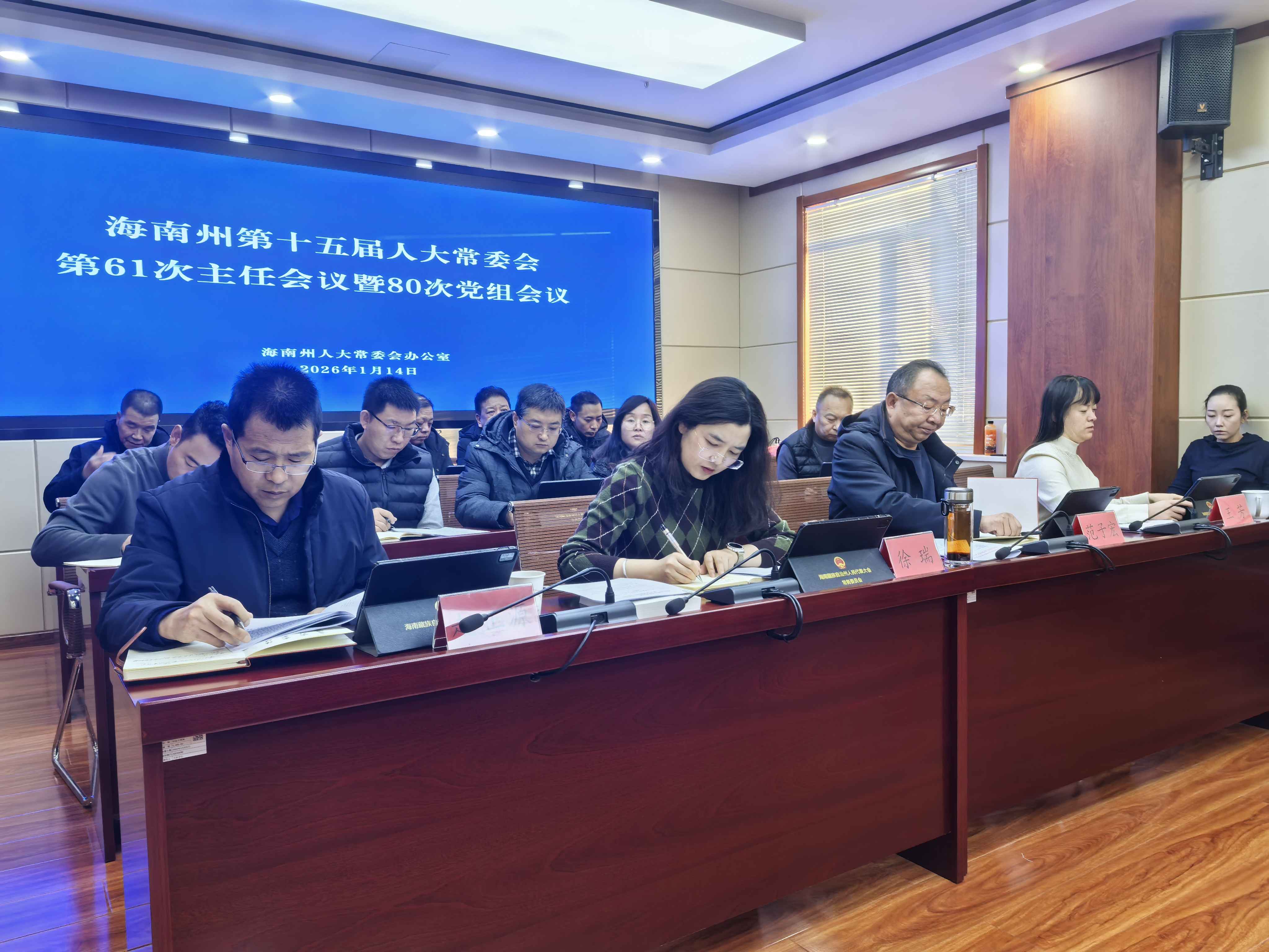 会议强调,州人大常委会两级党组及机关全体干部职工,要深入学习贯彻习近平总书记近期重要讲话精神,准确理解把握核心要义和精神实质,进一步凝心聚力、真抓实干,切实把学习成果转化为推动工作的强劲动力。要锚定“十五五”时期经济社会发展的重大战略任务,紧紧围绕全州工作大局履职尽责,优化完善常委会“一要点三计划”,推动各方面工作取得新成效。要认真履行全面从严治党政治责任,巩固拓展深入贯彻中央八项规定精神学习教育成果,从严从实纠治“四风”,持续弘扬新风正气,深化整治形式主义为基层减负,不断营造干事创业的浓厚氛围和良好生态。要加强和改进人大新闻宣传工作,大力宣传自治州经济社会发展和民主法治建设的显著成就,讲好海南人大故事、展现代表风采。要统筹做好州第十五届人民代表大会第七次会议的组织筹备,全力做好省十四届人大四次会议的服务保障,组织开好年度民主生活会、组织生活会,确保各项任务衔接有序、落实到位。