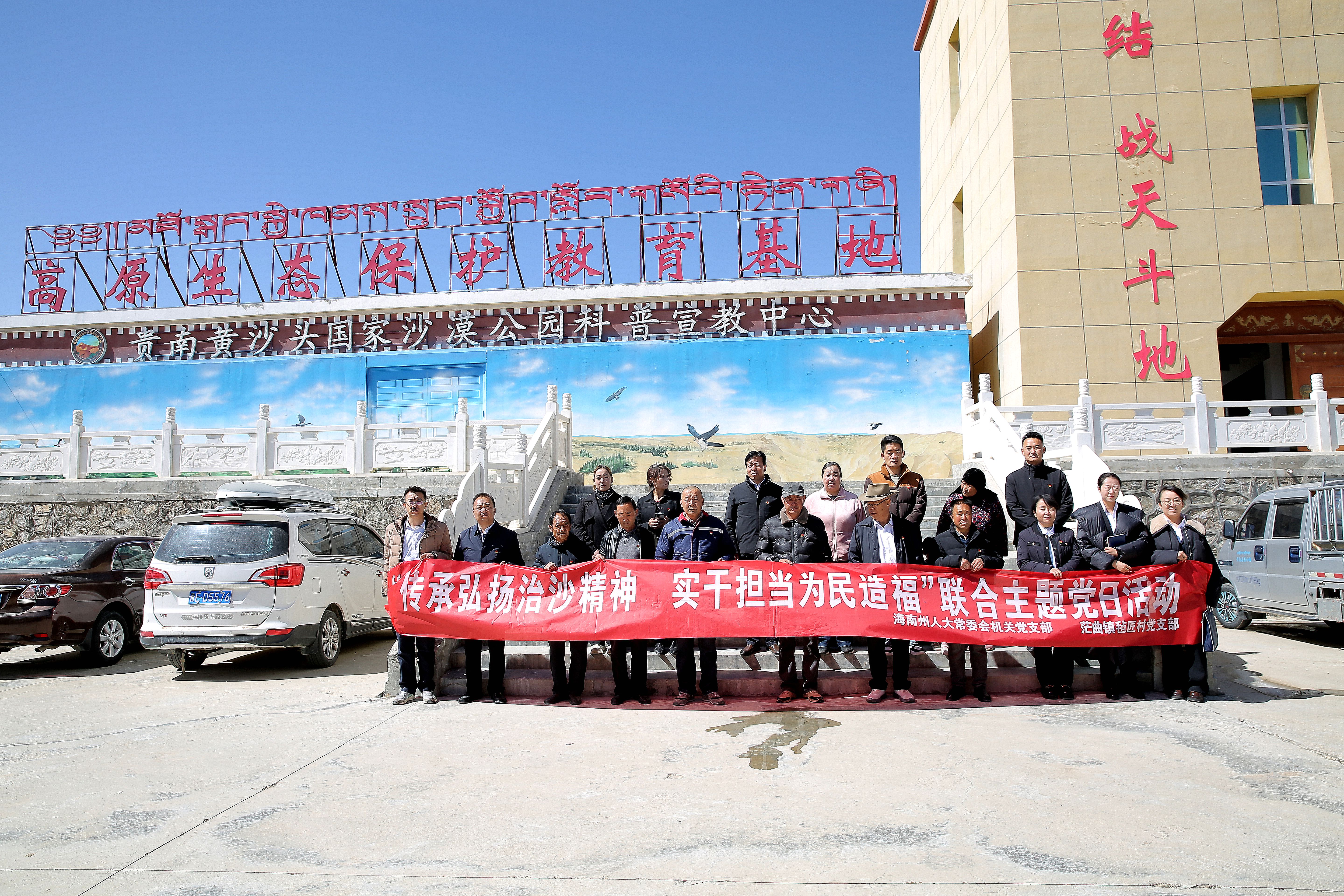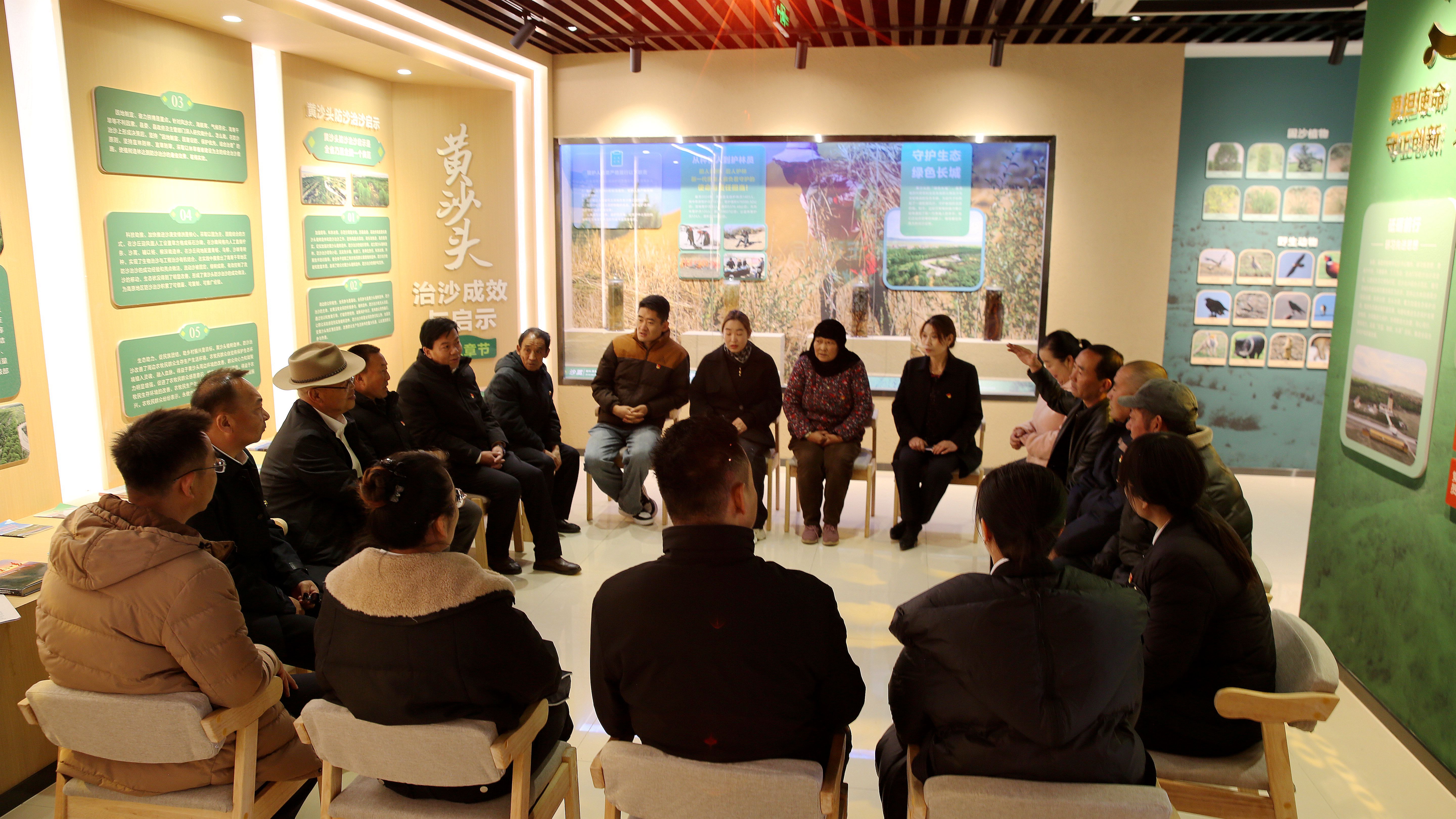 期间,全体人员前往贵南县防沙治沙党性教育基地进行实地参观,通过现场观摩、聆听讲解,从一张张新旧对比照片、一段段历史治沙影像、一片片广袤焕新植被中,深刻感悟治沙前辈不畏艰难、久久为功、甘于奉献的崇高精神,进一步坚定理想信念、强化宗旨意识、厚植为民情怀。参观结束后,就地交流座谈,大家围绕传承弘扬治沙精神、践行正确政绩观、推进“十化”党建、助力村级产业发展、解决群众急难愁盼等内容深入交流、踊跃发言,共同探讨党建引领乡村振兴、服务基层群众的思路举措,进一步凝聚起党组织战斗堡垒作用和党员先锋模范作用的思想共识与行动合力。